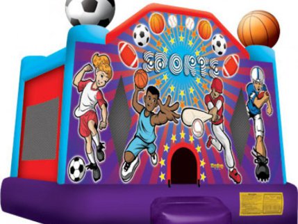 The kids will love this theme bounce house with a bonus basketball hoop inside!